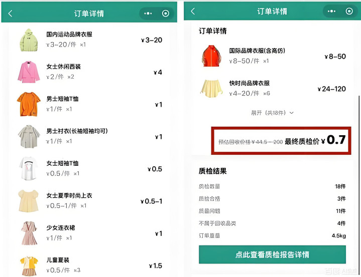 在环保理念深入人心的当下,旧衣回收成了不少人的选择,既处理了闲置衣物,又为环保出份力。可杭州的杜女士却在这事儿上栽了跟头。今年10月,她通过“绿衣侠”微信小程序寄出18件旧衣,平台预估回收价44.5元至200元,这价格跨度让人心里有了盼头。可谁能想到,质检后竟以衣物“发黄、有污渍、不符合二次销售标准”为由,只给结算0.7元,这巨大的落差谁能接受?难道旧衣回收的“美好承诺”都是镜花水月吗?